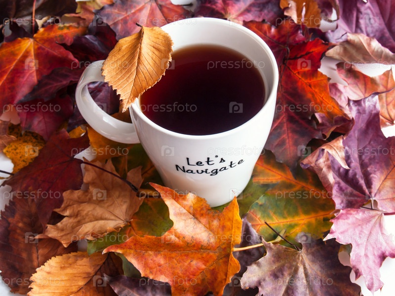 Осенние листья и чашка чая