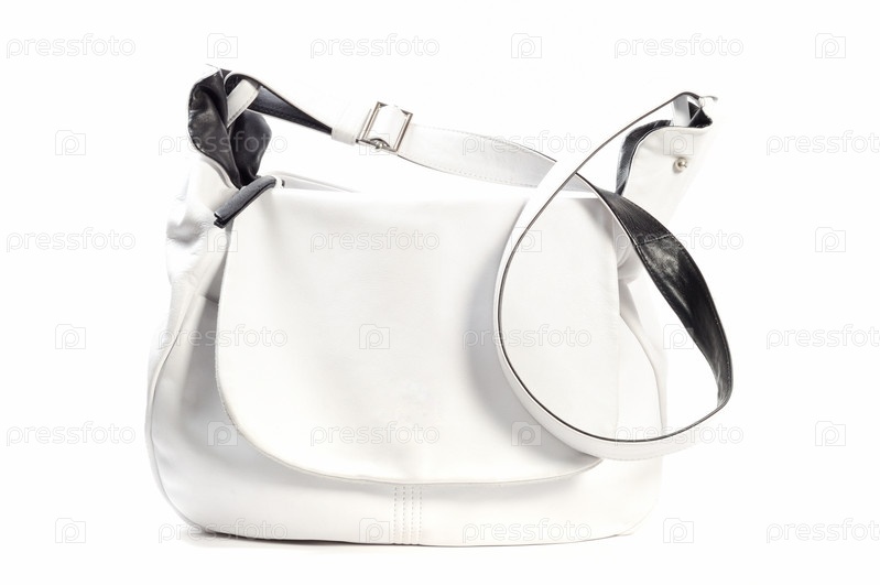 Белая кожаная женская сумка на белом фоне