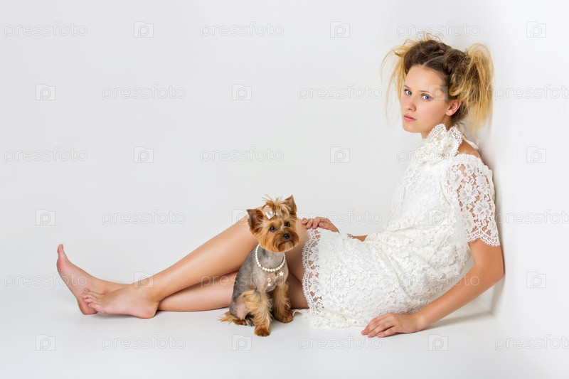 Девушка с йоркширским терьером