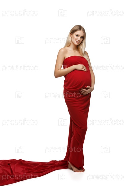Беременная девушка в красном платье