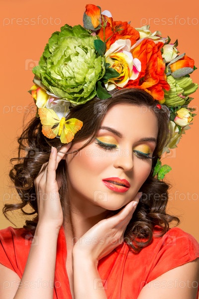 Красивая девушка в оранжевом платье