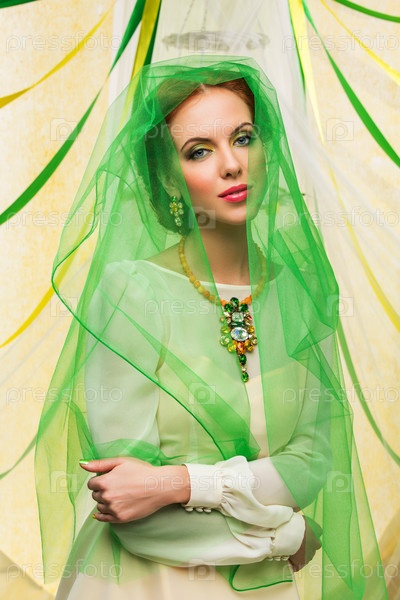 Красивая девушка в зеленой завесе