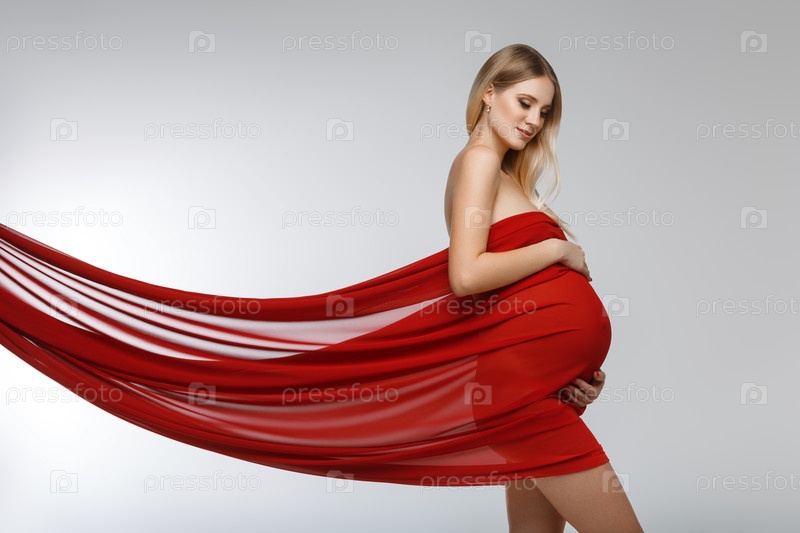 Беременная девушка в красном платье