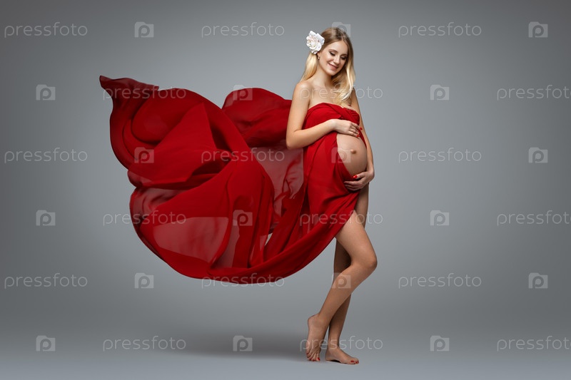 Беременная девушка в красном платье
