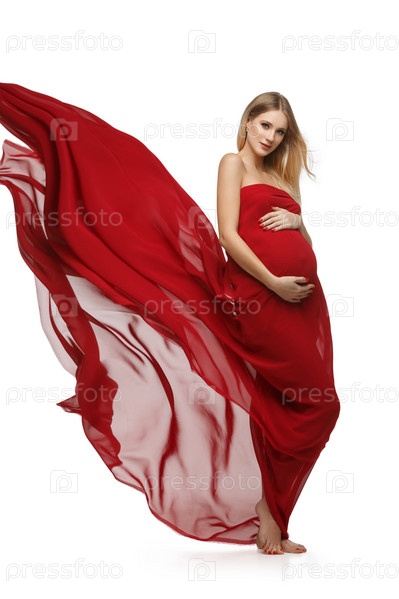 Беременная девушка в красном платье