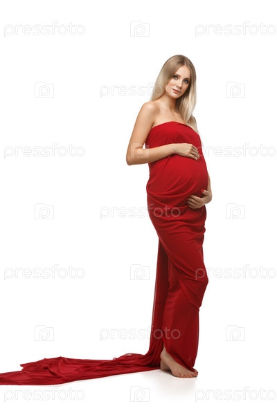Беременная девушка в красном платье
