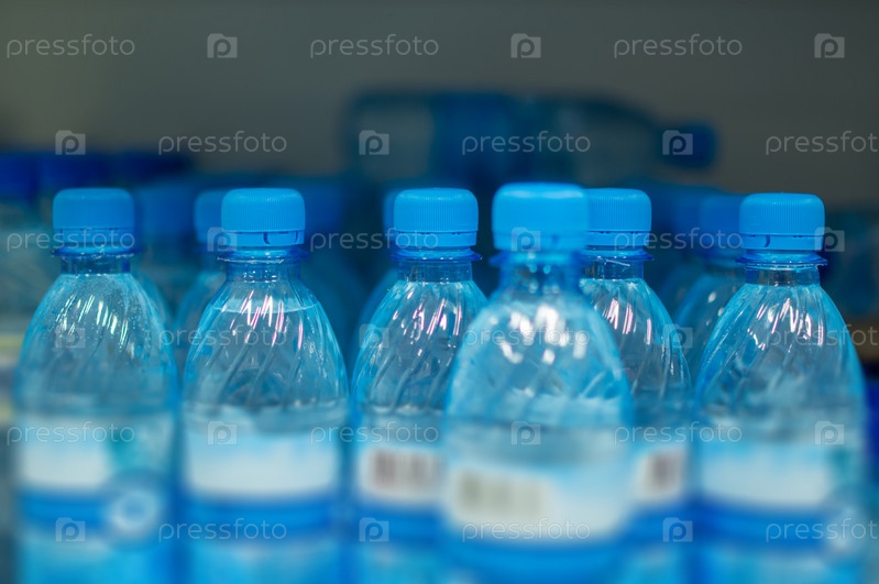 Бутылки с пресной водой на полке в супермаркете