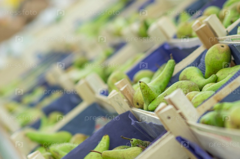 Груши в ящиках в супермаркете