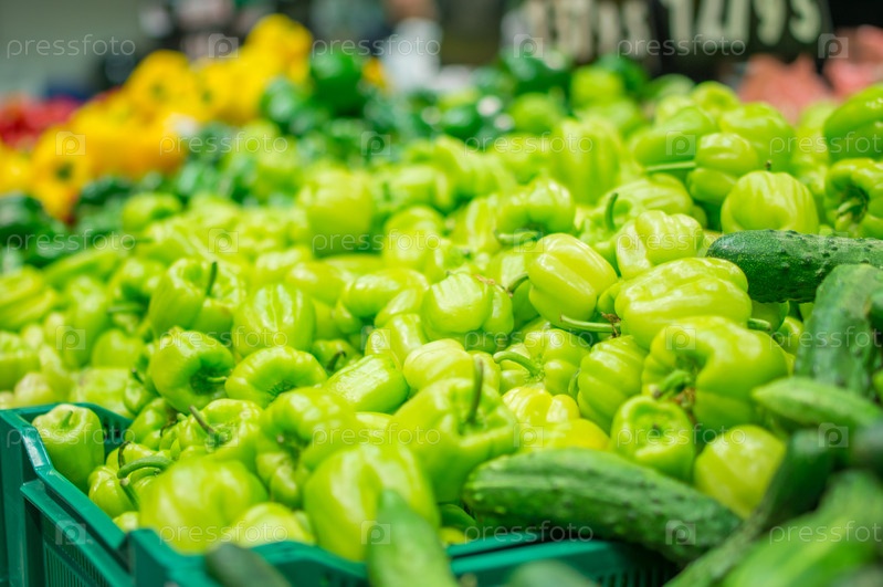 Разный перец в ящиках в супермаркете