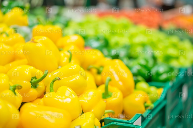 Разный перец в ящиках в супермаркете