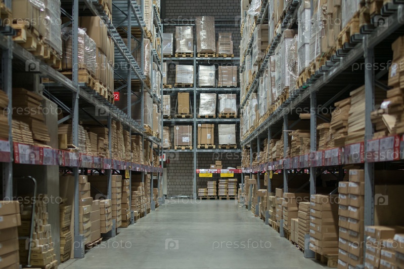 Стеллажи с коробками на современном складе