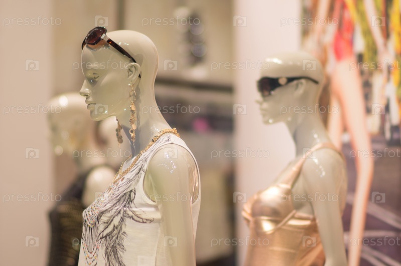 Женские манекены в платьях в супермаркете