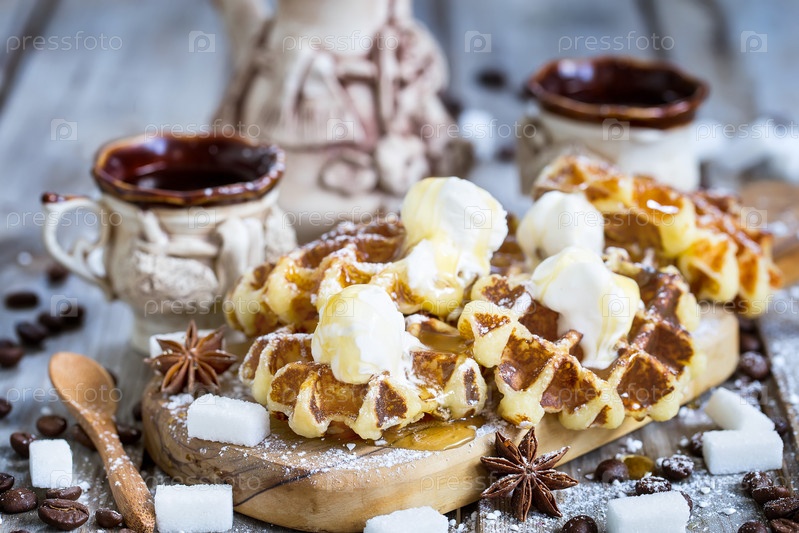 Вафли с мороженым и медом
