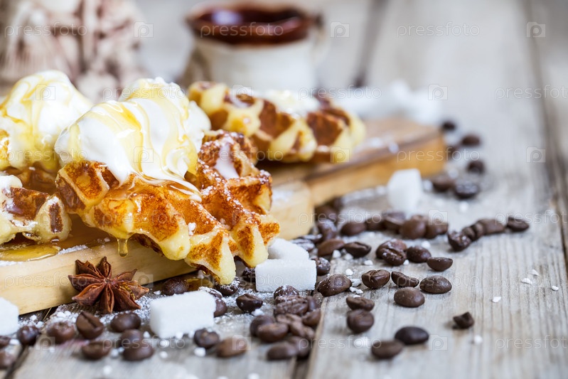 Вафли с мороженым и медом