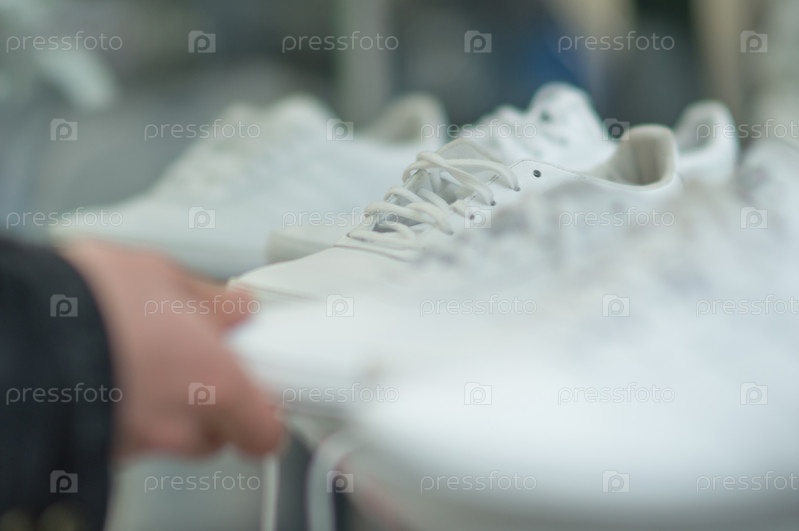 Белые кроссовки на полке в торговом центре