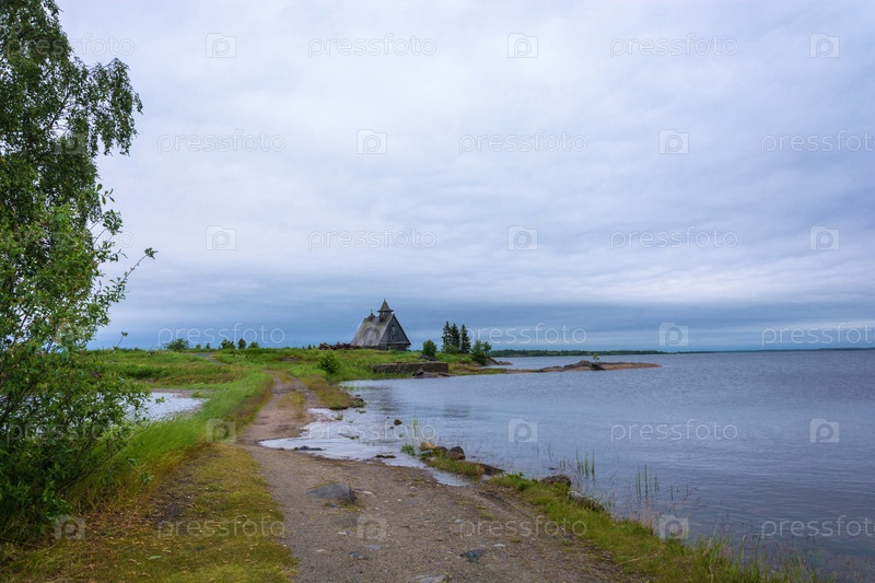 Красивый пейзаж с деревянной часовней