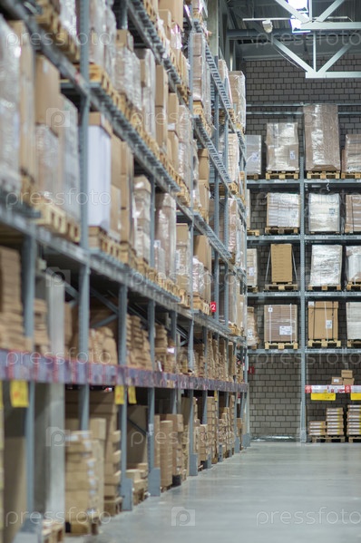 Стеллажи с коробками на современном складе
