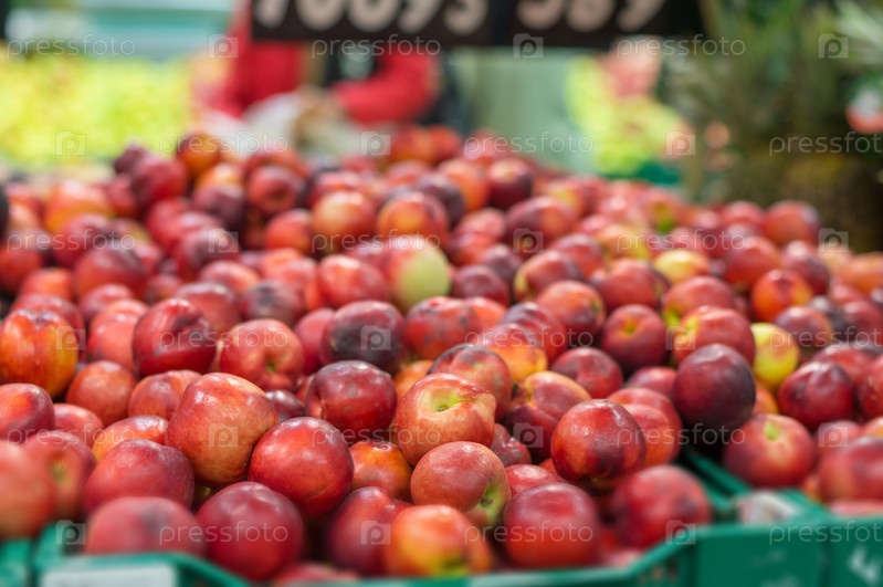 Яблоки в коробках в супермаркете