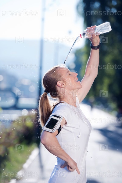 Спортсменка поливает себя водой
