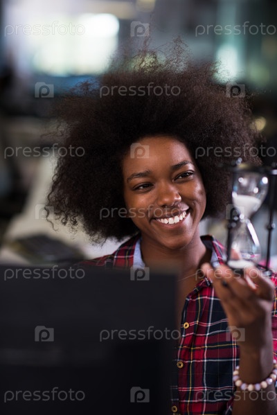 Счастливая девушка с песочными часами