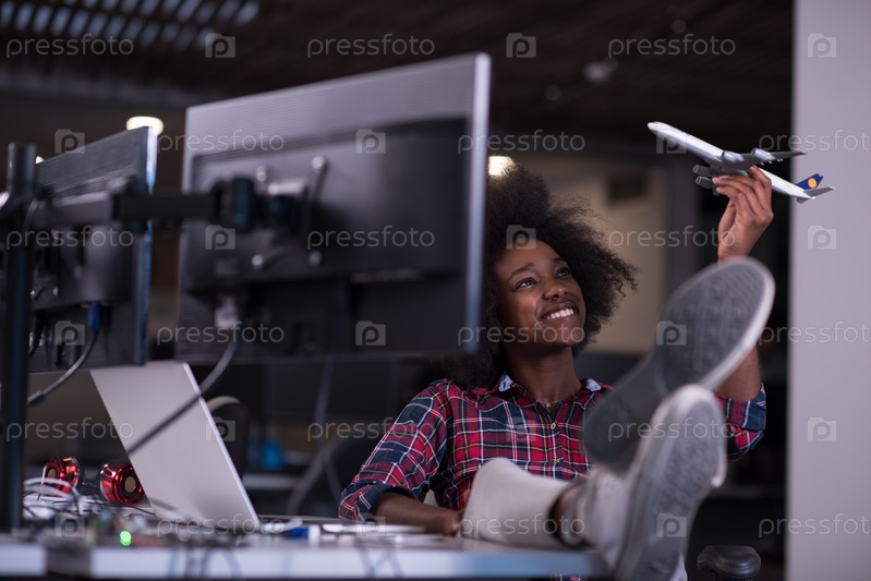 Счастливая девушка в офисе