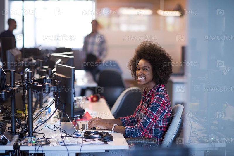 Счастливая девушка в офисе