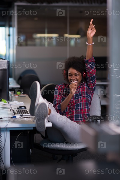 Счастливая девушка в офисе