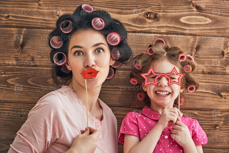 Мать и дочь с бумажными аксессуарами