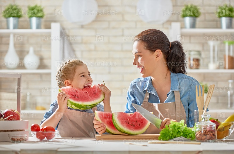 Мать и дочь кушают арбуз