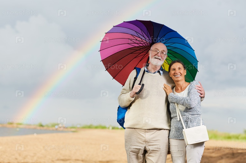 Счастливая пара под зонтом