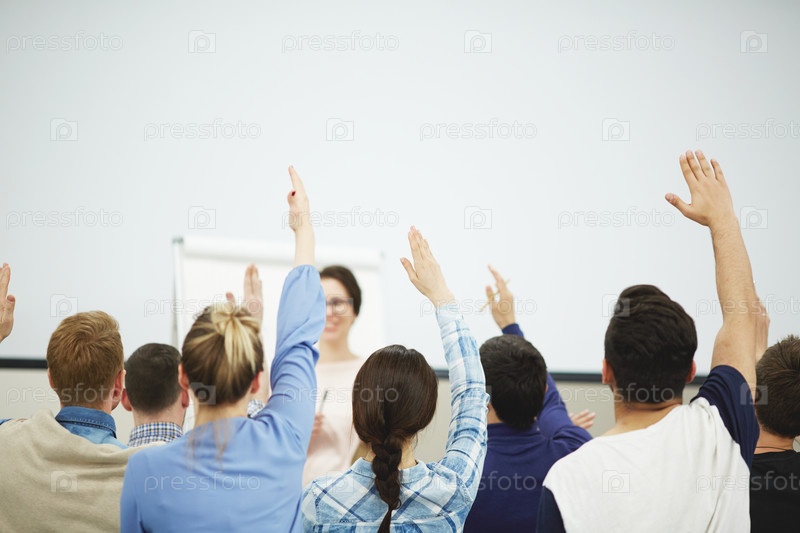 Студенты с поднятыми руками