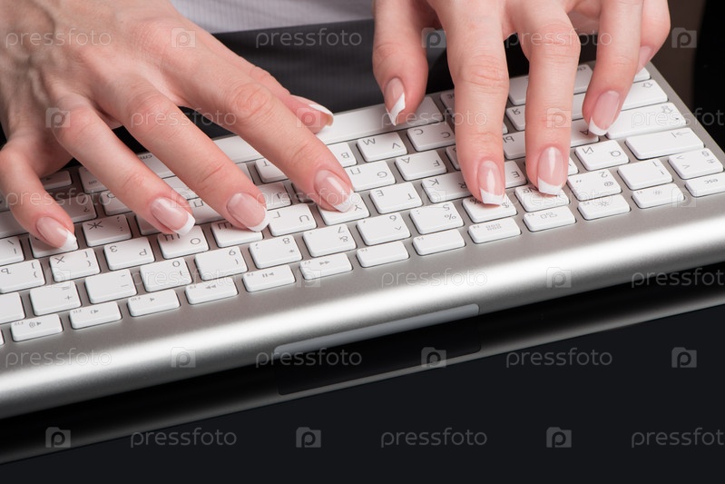 Женские красивые руки на клавиатуре