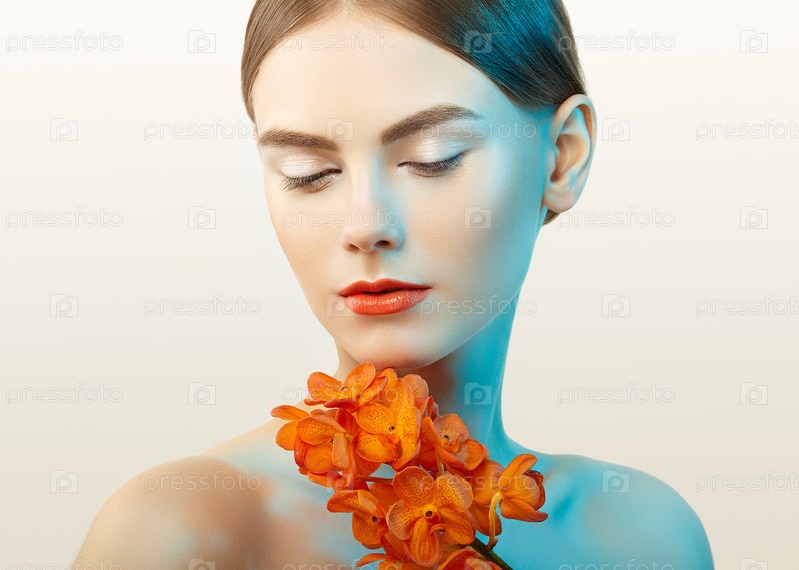 Портрет красивой молодой женщины с орхидеей
