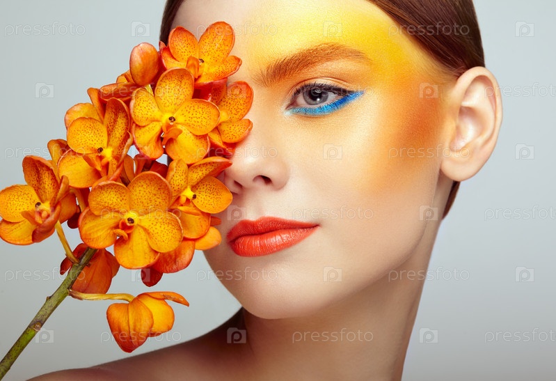 Портрет красивой молодой женщины с орхидеей