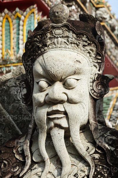 Голова каменной статуи в буддийском храме Ват Пхо, Бангкок, Таиланд