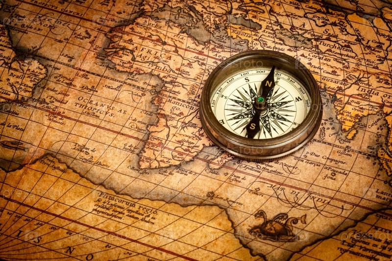 Ретро-компас на древней карте