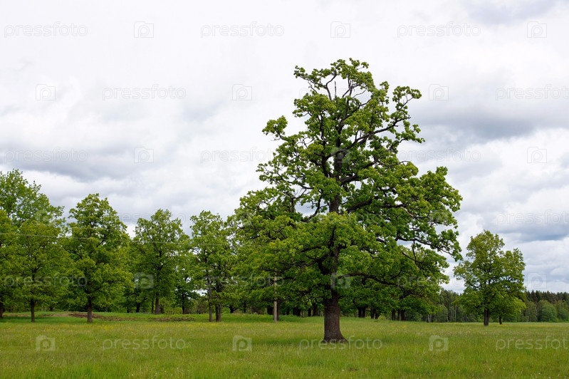 Деревья на фоне облачного неба,