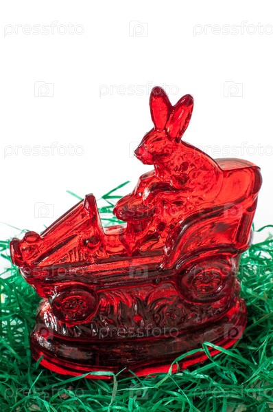 Пасхальный леденец в форме зайца на автомобиле на траве