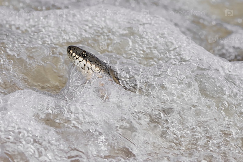 Водяная змея в пенистых волнах