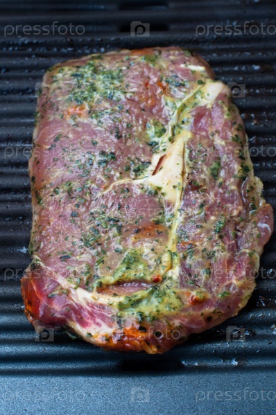 Сырой маринованный антрекот на решетке барбекю