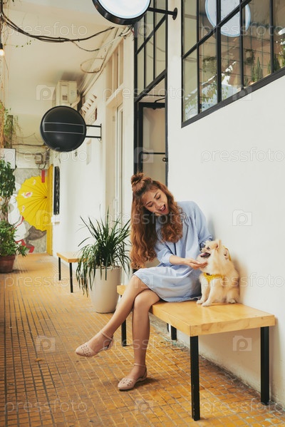 Девочка играет с собакой