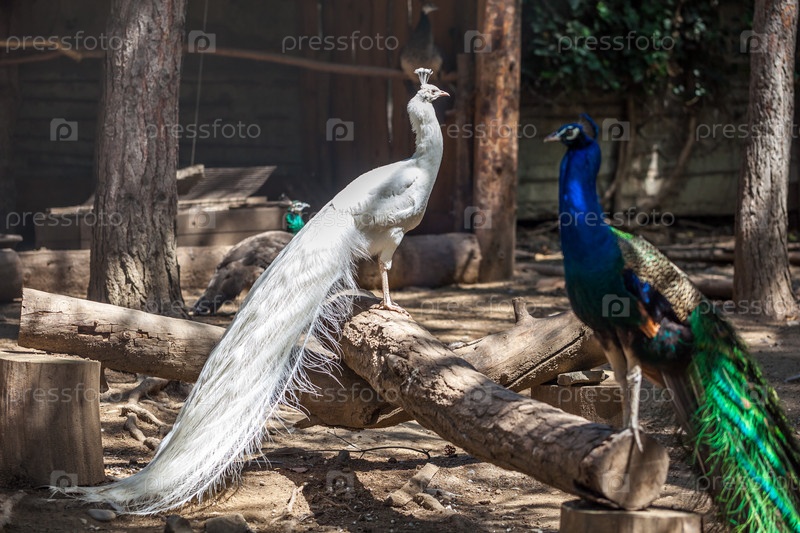 Красивый белый павлин в зоопарке Тбилиси, Грузия