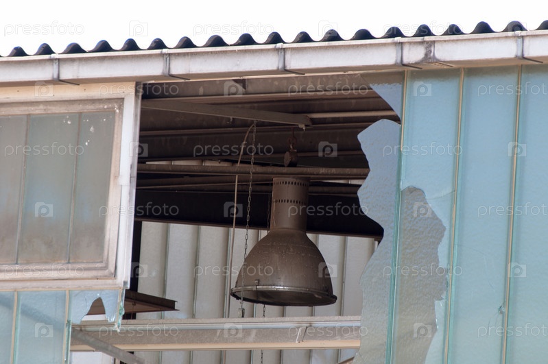 Заброшенная фабрика с разбитым окном