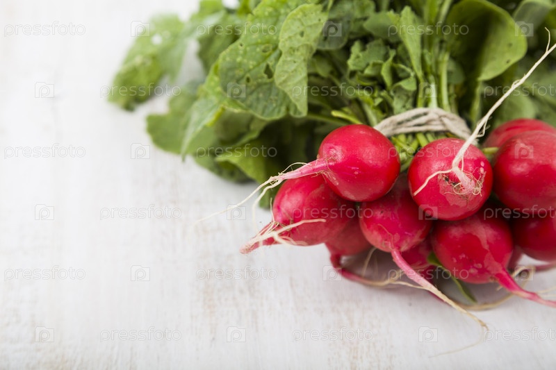 Спелые красный редис с листьями