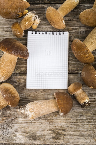 Белые грибы и блокнот