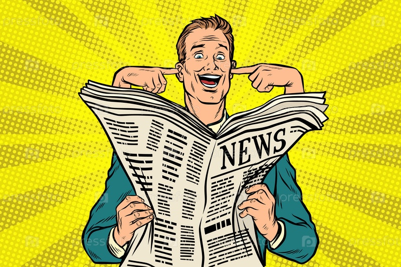Бизнесмен читает прессу с закрытыми ушами