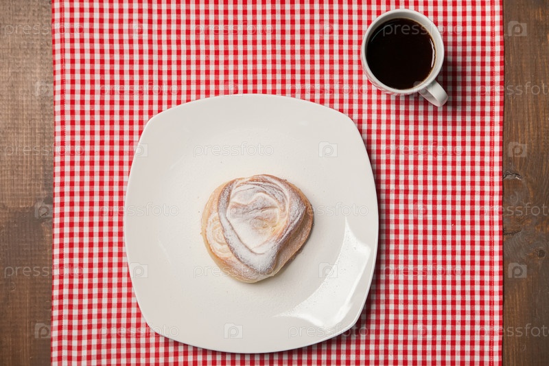 Кофе и сладкий кекс на клетчатой салфетке