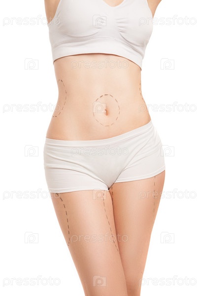 Женщина в нижнем белье с очертаниями липосакции