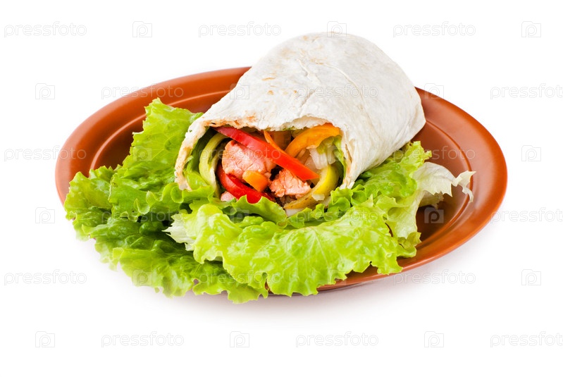 Буррито с лососем, перцем и помидорами