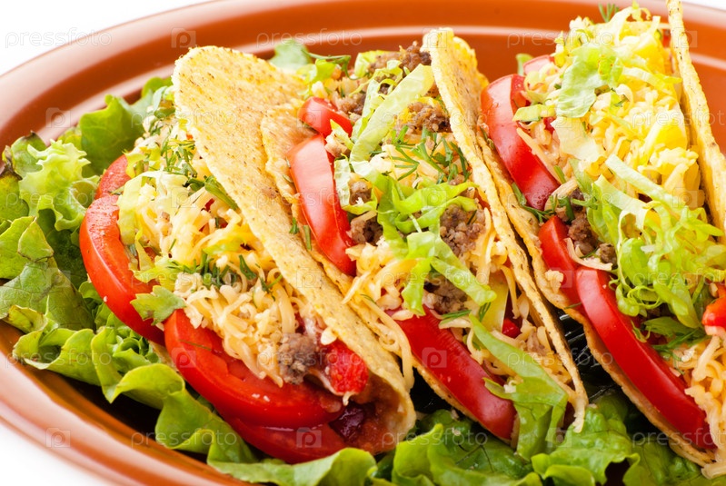 Тако с салатом, помидорами и сальсой